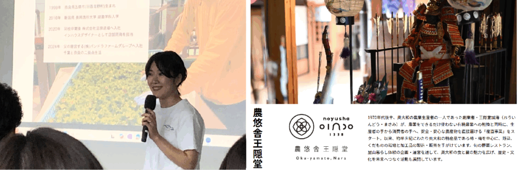 奈良・五條市出身で、大学・新社会人を県外で過ごした後に約9年ぶりにUターン。お父様が代表を務める(株)パンドラファームグループで商品企画・開発、産地交流企画等を担当されている方。