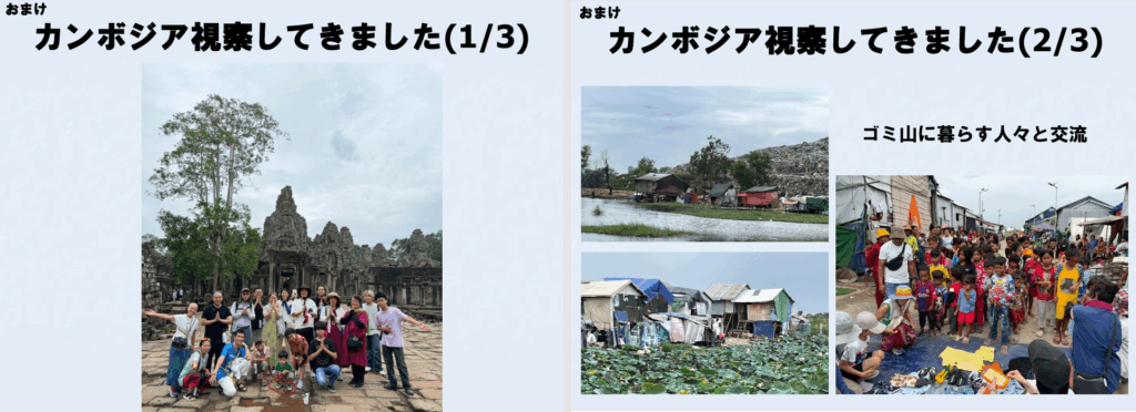 最後に、先日、支援活動の一環で訪問したカンボジアの様子について紹介して下さいました。ザ・ピープルが集めた古着も預かって持って行かれたそうです。