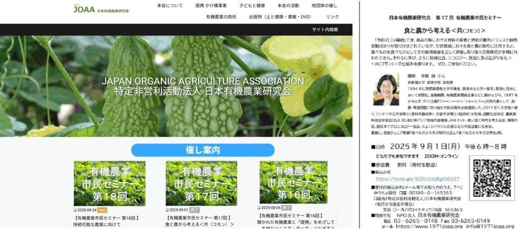 9月1日(月)の夕方は、NPO日本有機農業研究会のセミナーにオンライン参加。