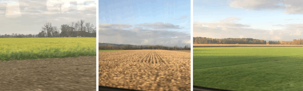 車窓から見えるのは畑、畑。菜種や小麦。