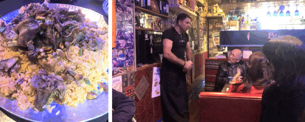 オーナーシェフのマンスール・スドゥキさんが、次々と料理を出して下さいます。重たい話に沈んでいた心がパッと明るくなり、歓声さえ上がりました。