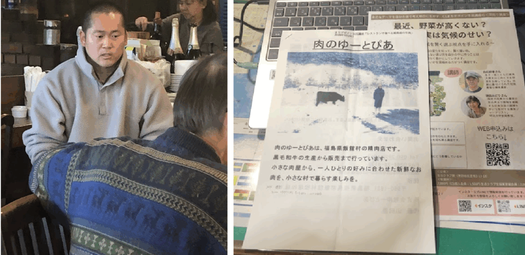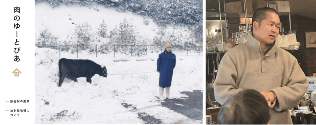 福島・飯舘村は、2011年3月の東京電力・福島第一原子力発電所の事故により全村避難が強いられました。その飯舘村に帰還して黒毛和牛の生産から販売まで行い、ブランド牛・飯舘牛の復活に向けても活動されている山田豊さん(株式会社ゆーとぴあ)のお話を伺いつつ、山田さんが育てた牛肉をランチで頂くという企画です。