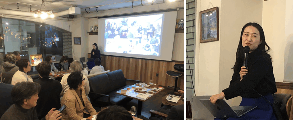 食事を頂きながら、12月の現地ツアーに参加された方からの報告。