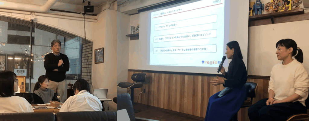 Tregionの三廻部(みくるべ)麻衣さんの進行により、まず、主催者からの挨拶(以下、文責はすべて中田にあります)。