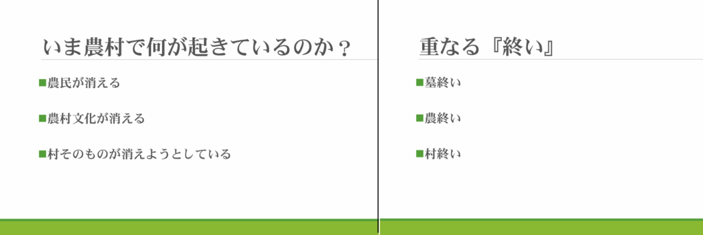 「日本から農民が消えようとしている。作物も、農村自体も消えつつある。